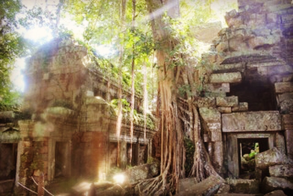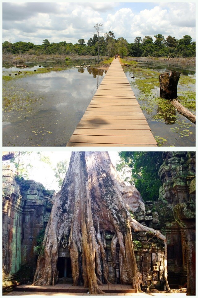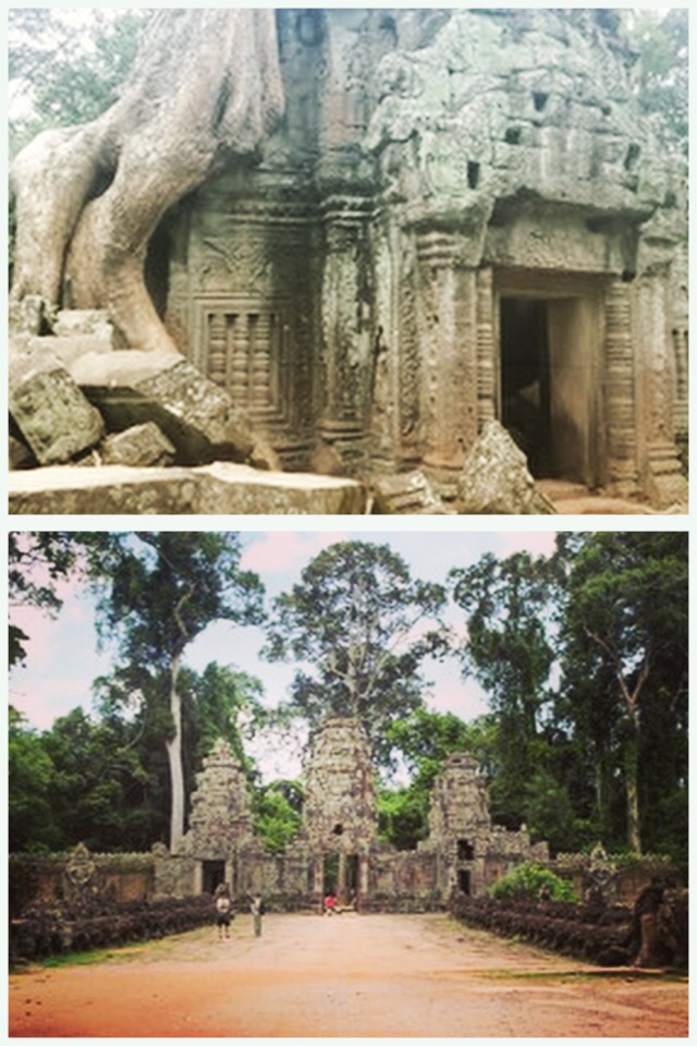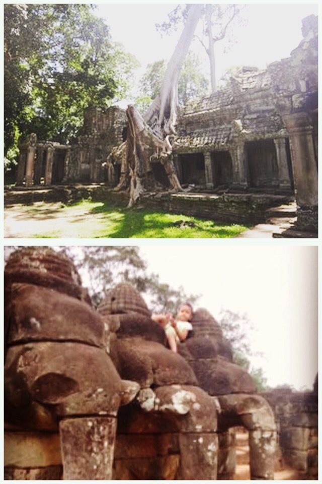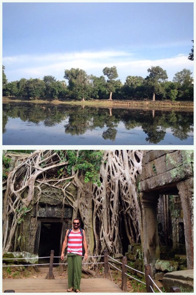 Nós entravamos, subíamos, descíamos, saltávamos, corríamos de cima a baixo; sacávamos fotos, descansávamos à sombra das imensas árvores; conversávamos contagiados pela energia do lugar, ou ficávamos em silêncio absorvidos pela chocante paisagem. Às vezes falávamos com outros visitantes, falávamos com os cambojanos que encontrávamos no caminho; meditávamos, abraçávamo-nos e deixávamo-nos encantar pela magia que nos rodeava. Podia passar horas no meio daquelas pedras todas a olhar para as árvores sem fim. Ou ficar no meio dos troncos, que os meus braços não chegavam para abraçar, a olhar fascinada para as imagens esculpidas no amontoado de pedras à nossa volta.