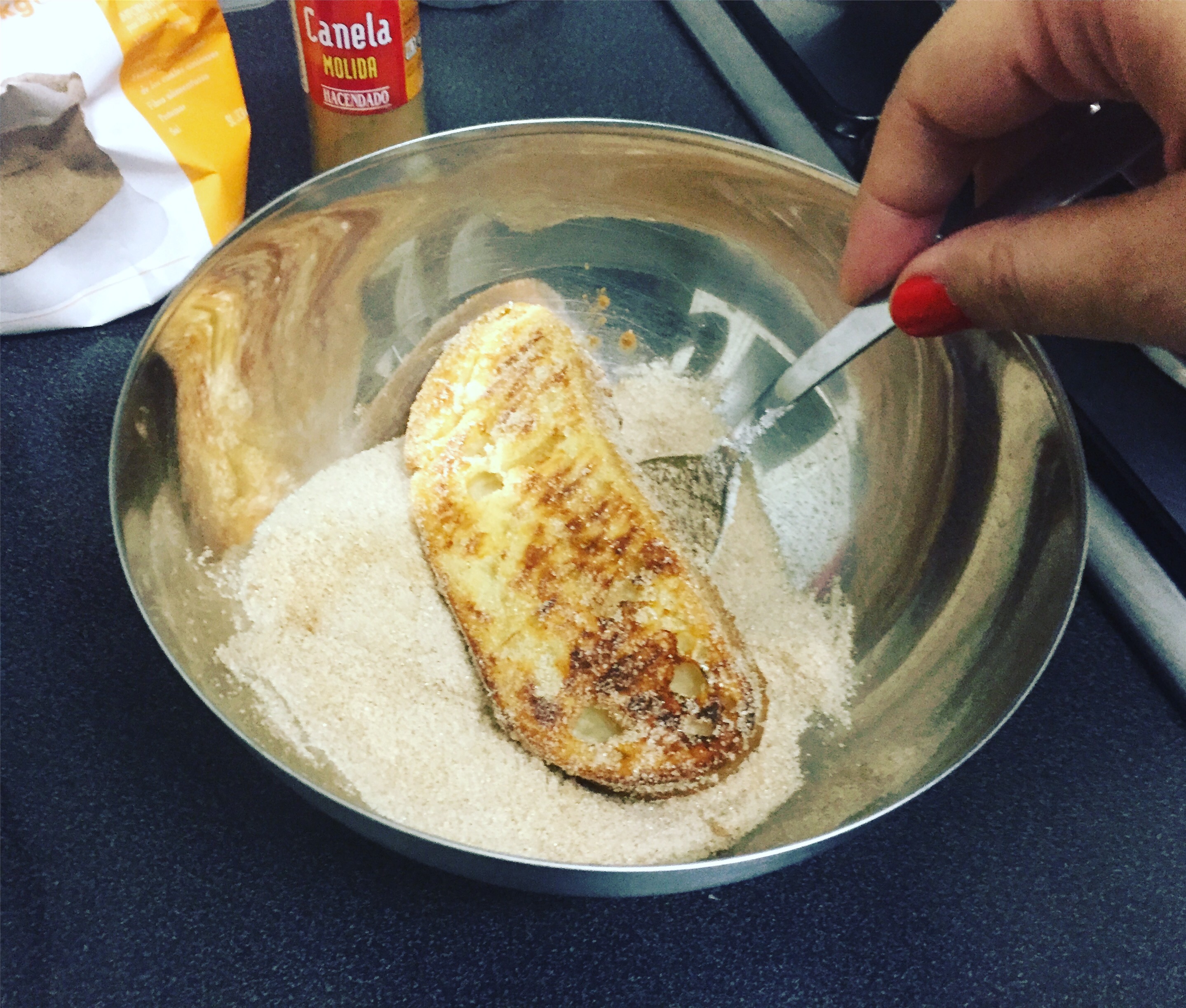 As típicas rabanadas que em Portugal se comem no Natal, aqui em Espanha come-se em qualquer altura do ano, podendo ser uma corriqueira sobremesa num qualquer almoço domingueiro de Abril.
