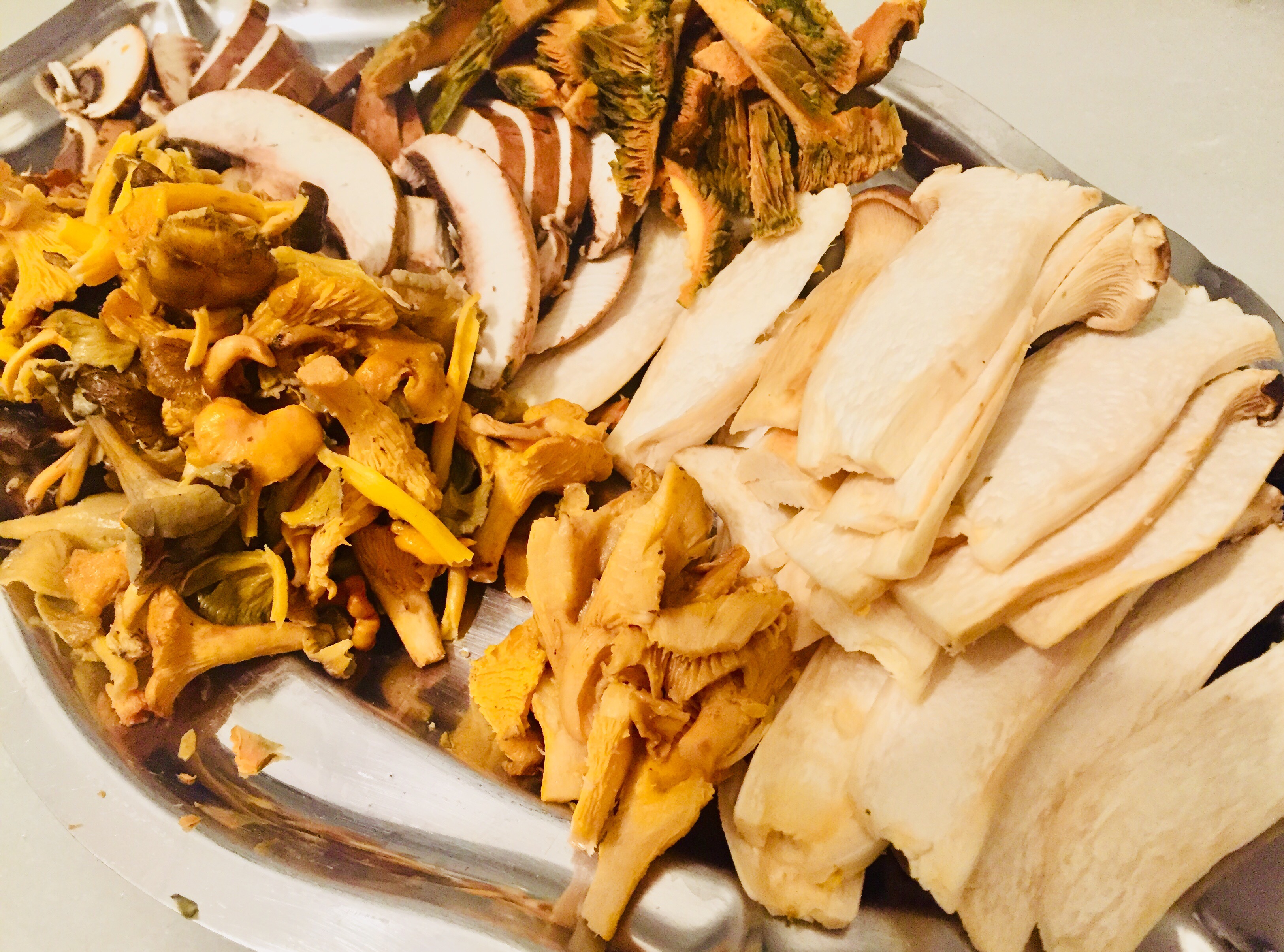 Neste momento todos os mercados da cidade têm vários postos com cestas de cogumelos, um mais exótico e gostoso do que o outro.
