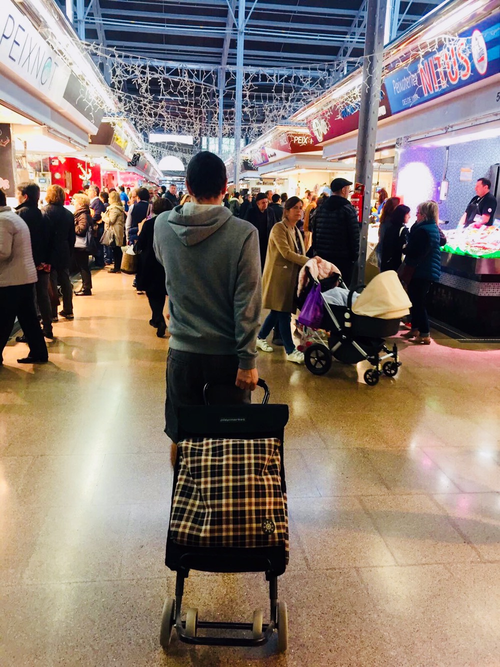 Aqui na Catalunha muitos mercados têm não só as bancas que vendem produtos, mas também pequenos postos para comer; por isso as pessoas têm por hábito, quando vão às compras, parar para picar umas tapas, comer um bocadillo de qualquer coisa e beber umas cañas para começar bem o fim-de-semana.